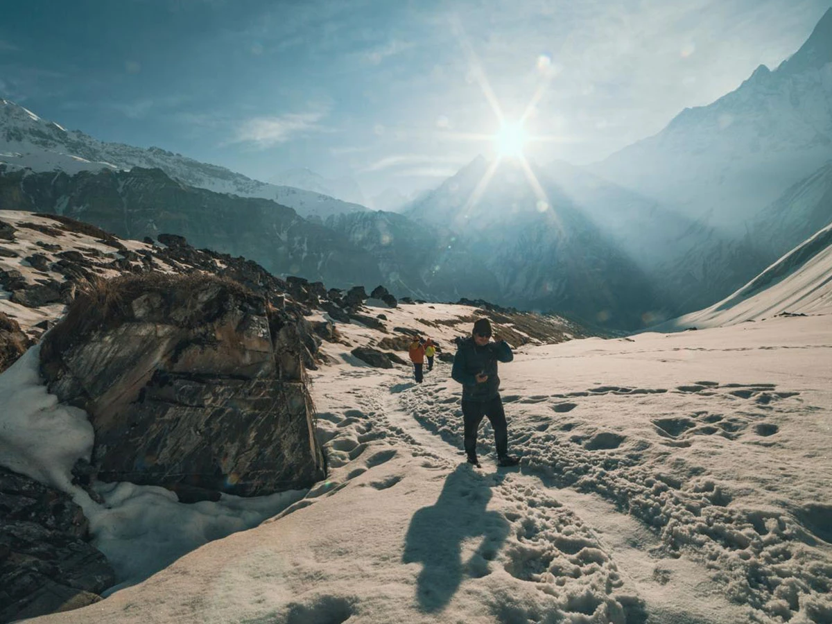 Reaching the iconic Annapurna Base Camp at 4,130 meters (13,550 feet) is the highlight of the trek. Standing at the base of giants like Annapurna I, Hiunchuli, and Machapuchare (Fishtail Peak), surrounded by snow-capped peaks, is a moment trekkers remember forever. After witnessing the incredible sunrise views, the descent takes you to Jhinu Danda, where you can soak your tired muscles in the natural hot springs.